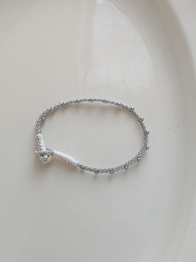 \Made-to-orderのシルバーピュータブレスレットのご予約のご案内/ サイズと革の色をお選びいただけるシルバービーズブレスレットのご案内です。 ご自身のサイズと革の色をお選びいただき インスタブラムのDMにてご希望をお知らせください。 ------------------------------------------------- 三つ編みに編み込んだピュータ糸と シルバービーズをあしらったブレスレット 上品で控えめな印象を与えてくれ また手首を美しく華奢に見せてくれます。 お持ちの時計やほかのブレスとの重ね付けもしやく ひとつあるとアクセサリーのコーデが広がりますよ! もちろんこのブレスレットだけでも グッと手元が華やかな印象になるのでおすすめです。 留め具に使われているのはトナカイの角。 写真のブレスレットの革の色はシルバーとの相性もよい ホワイトを使っています。 ご希望の革の色をお知らせくださいね。 金属アレルギーの方にも 安心してお使いいただけます。 自分へのご褒美としても、 大切な方へのギフトとしても喜ばれますよ。 サイズ: 14~14.5㎝(ループ含まず) 14.5~15㎝(ループ含まず) 15~15.5㎝(ループ含まず) 15.5~16㎝(ループ含まず) 16~16.5㎝(ループ含まず) 16.5~17㎝(ループ含まず) 17~17.5cm(ループ含まず) その他(ご相談ください) 手首の長さ+1cmがちょうどよい長さになります。 ◇受注期間:9/1(月)~ 9/7(日) 23:59 ◇お届け時期:10月中旬を予定しています。 ◇Price:おひとつ¥15500 (税込み・送料無料です) ご注文頂いたブレスレットが到着しましたら、 こちらのショップにお客様の専用サイトをお作りします。 詳しいお写真や動画を載せますのでご確認ください。 お支払いはそちらからお願いします。 ご注文後のキャンセル・変更は 基本的にお受けできませんので、 ご理解・ご了承のほどお願い致します。 ◆商品詳細 素材: ピューターワイヤ(錫糸) シルバービーズ(Stainless Steel) トナカイ革(留め具部分) トナカイ角(ボタン) 発送方法:ゆうパック その他: ひとつひとつ手作業で製作しているため多少の誤差が生じること場合があります。 ご理解の上、ご購入くださいますようお願い致します。 ご不明点やご質問がございましたら お気軽にお問い合わせください。
