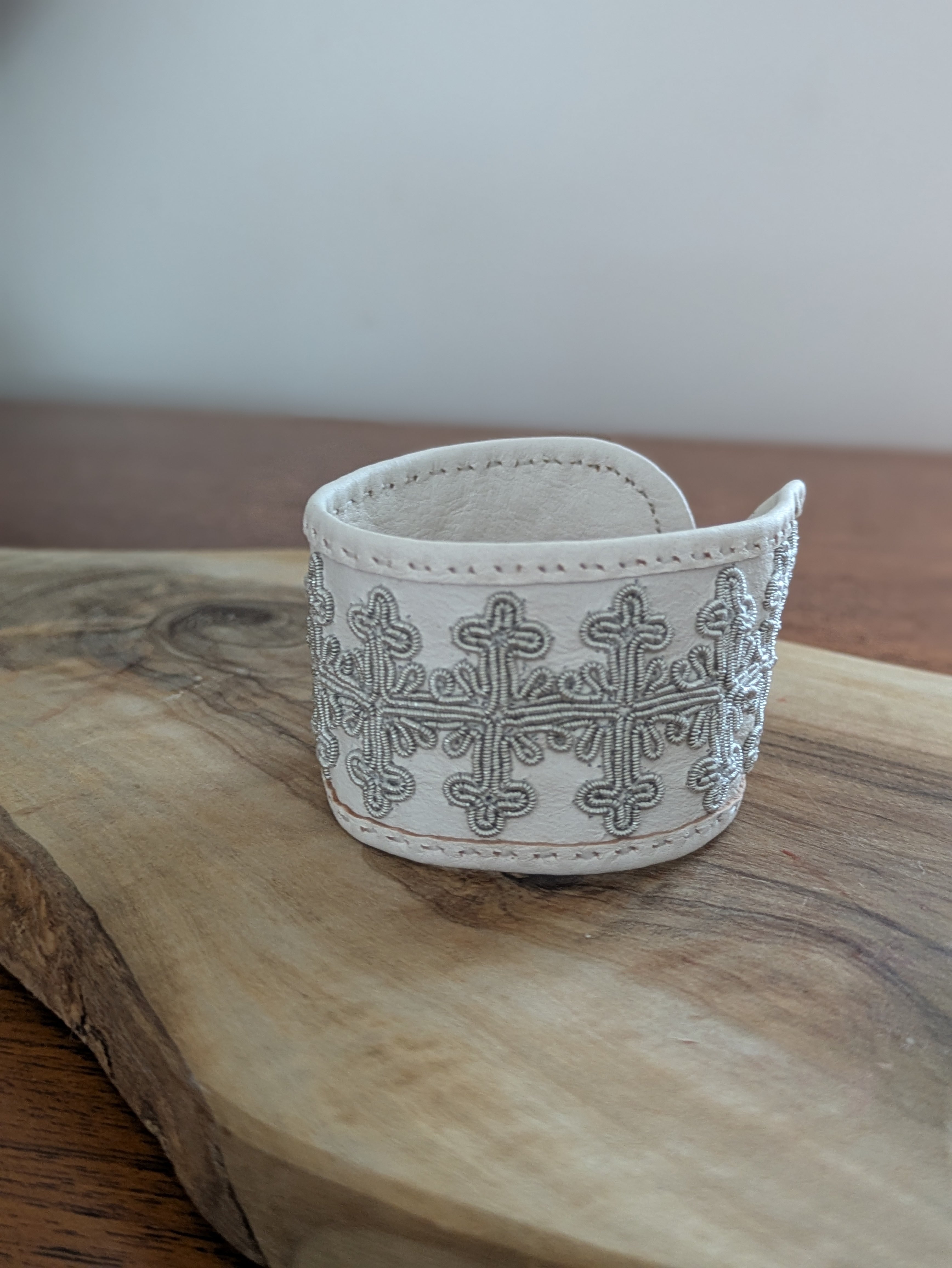 N様 ご予約品 ピューター刺繍ブレスレット(White)