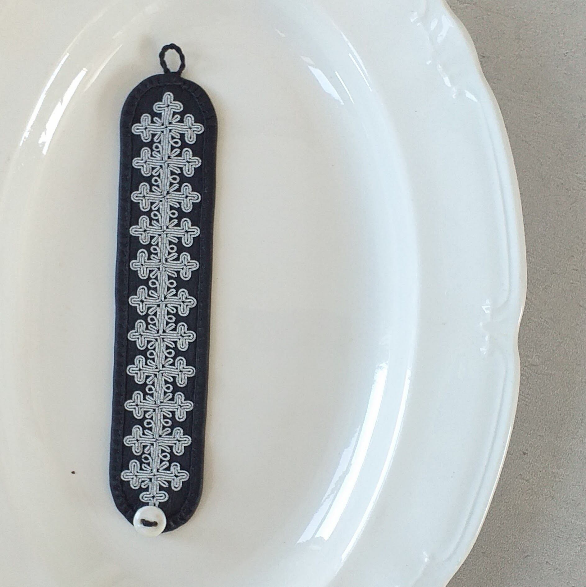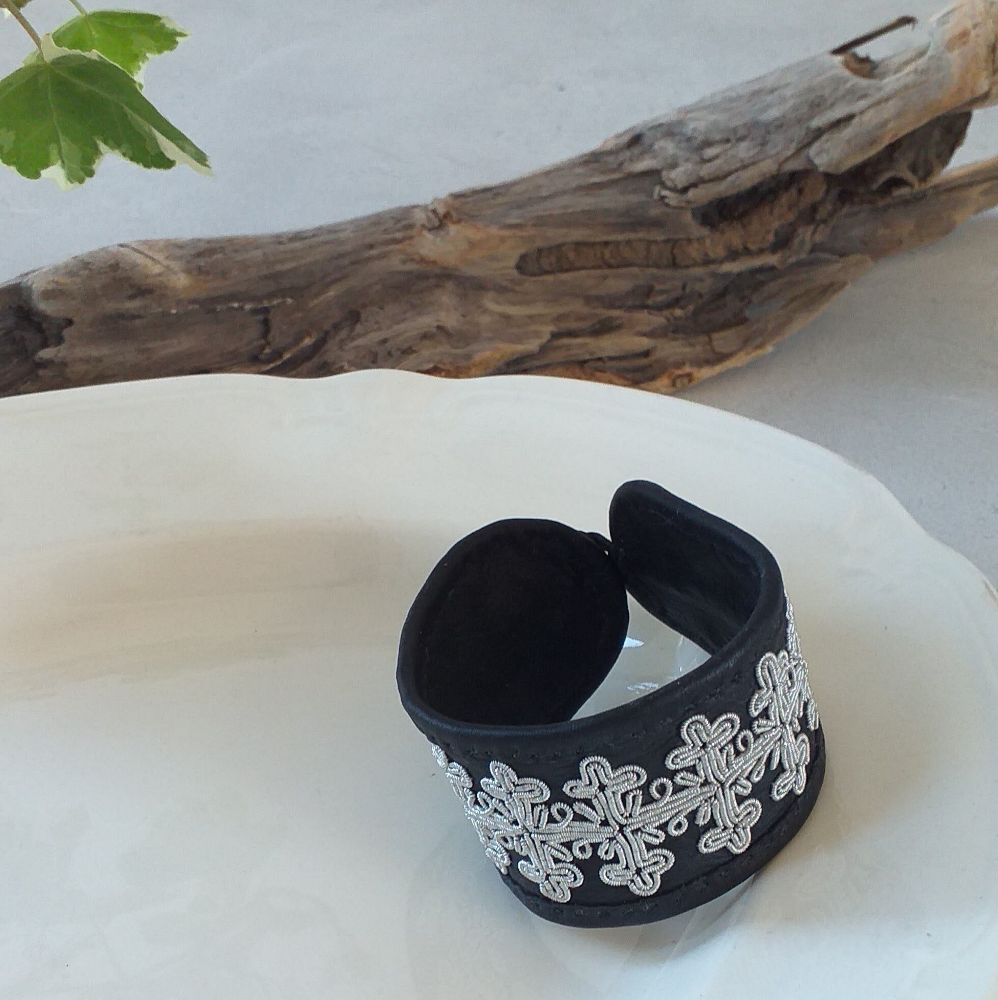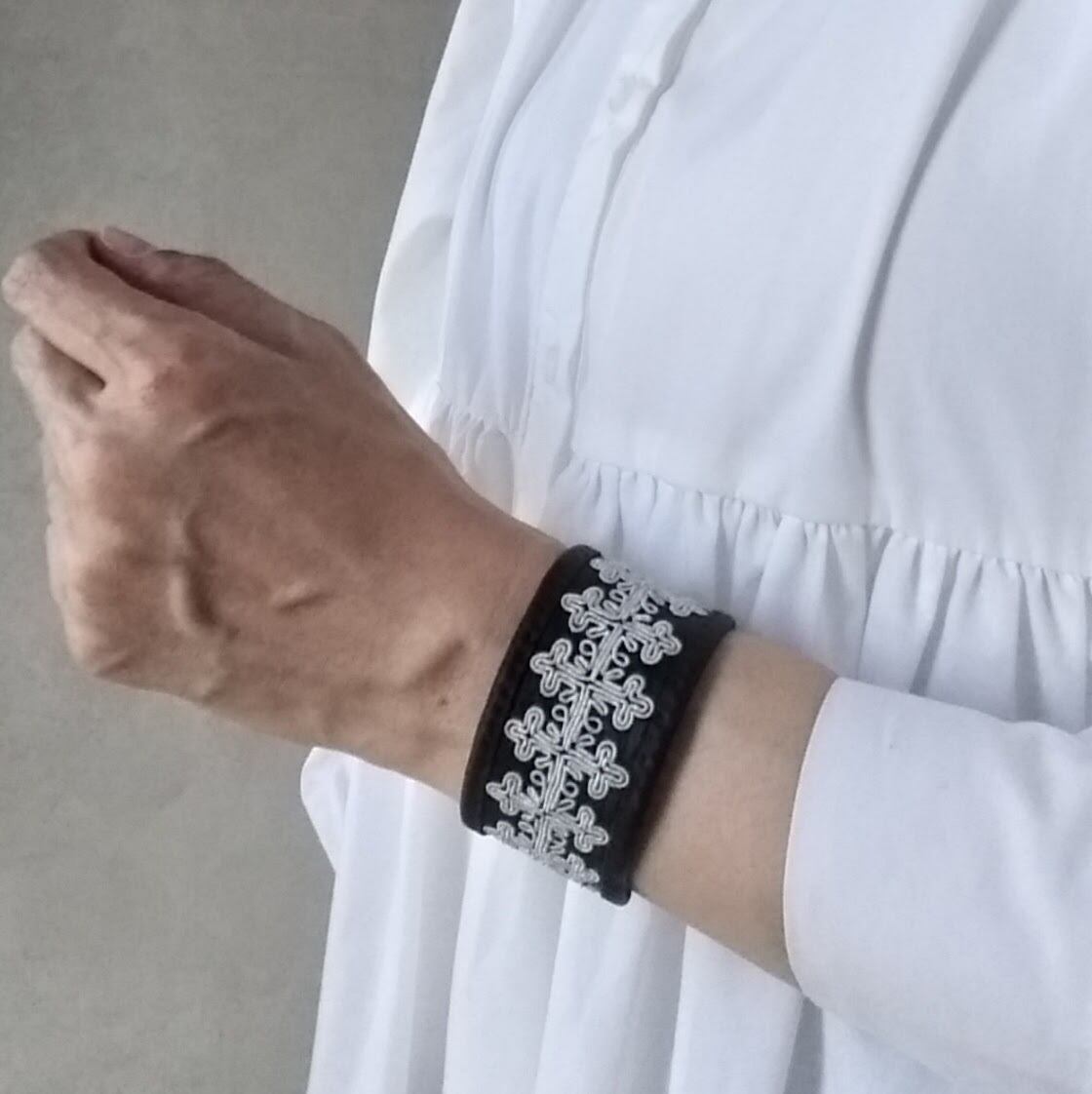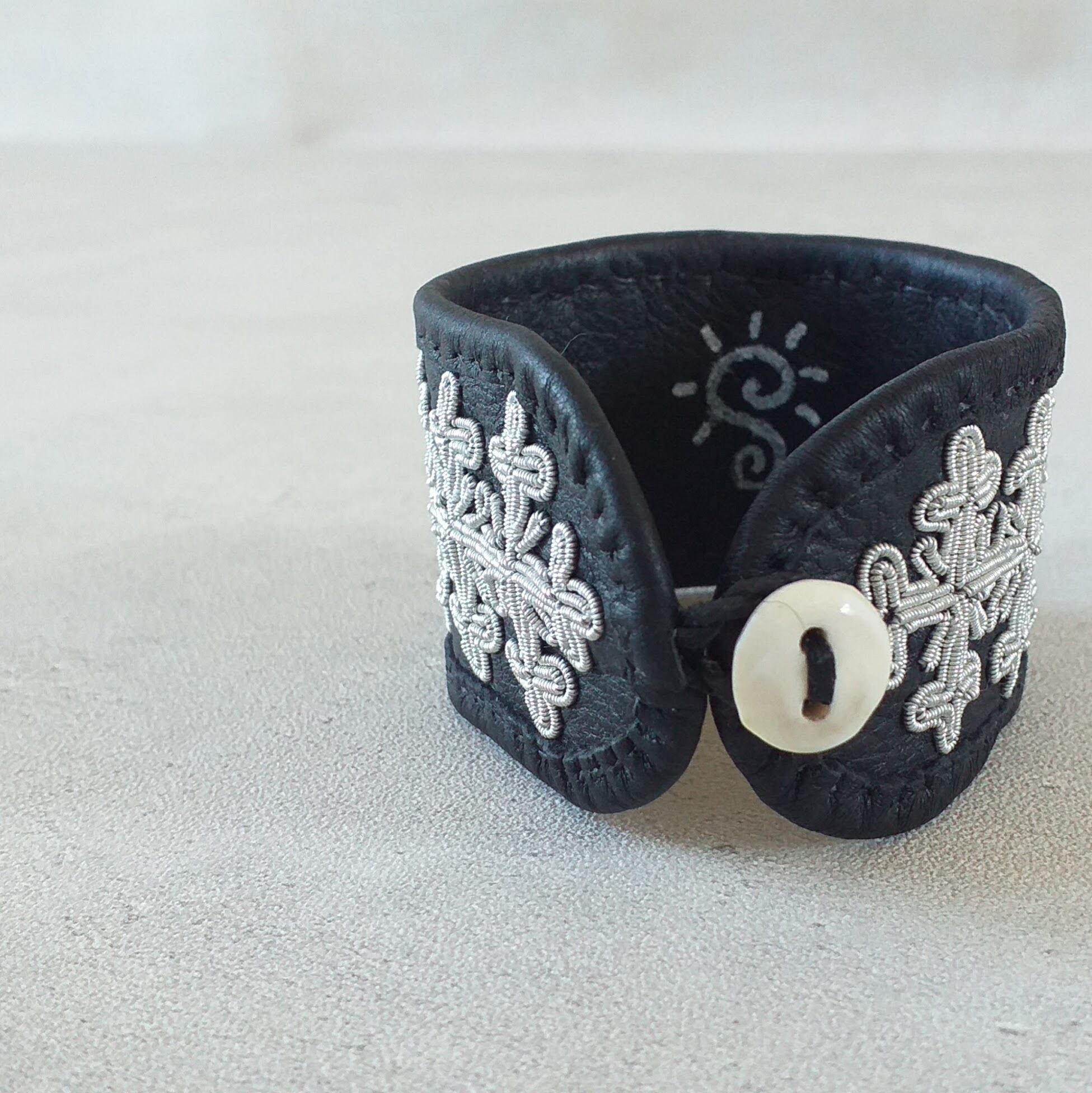 そのトナカイの革や角が使われるピュータ刺繍ブレスレットは、