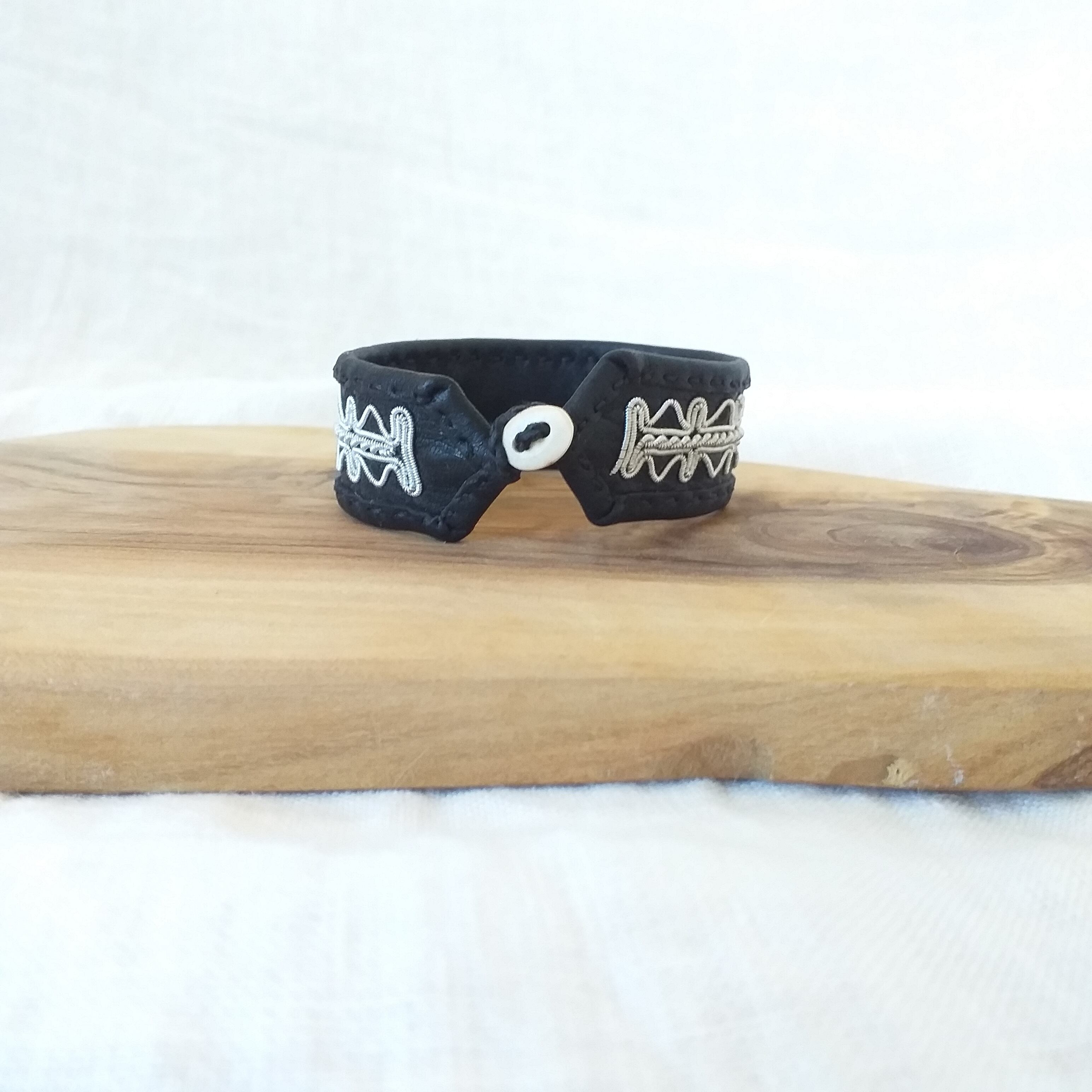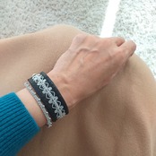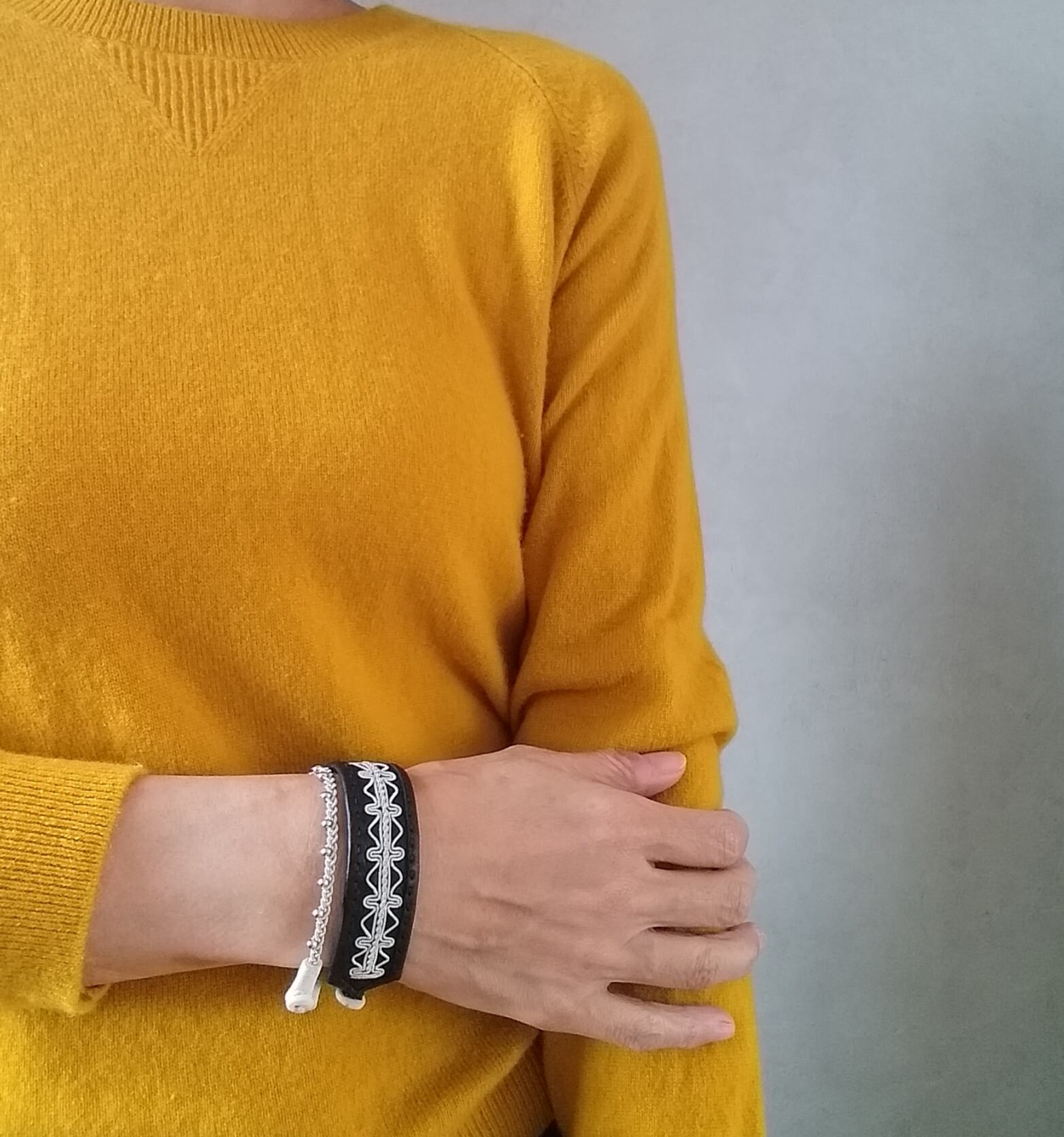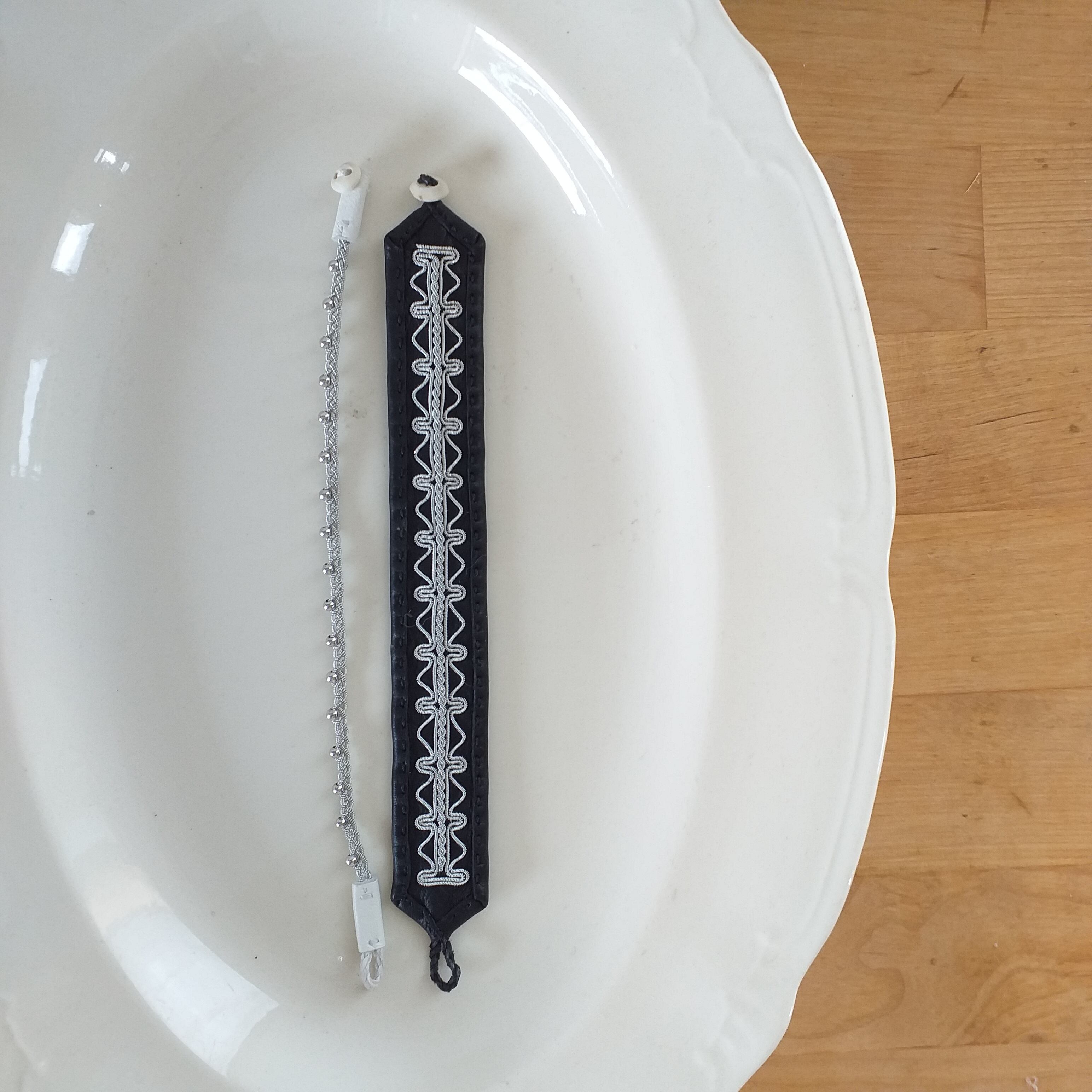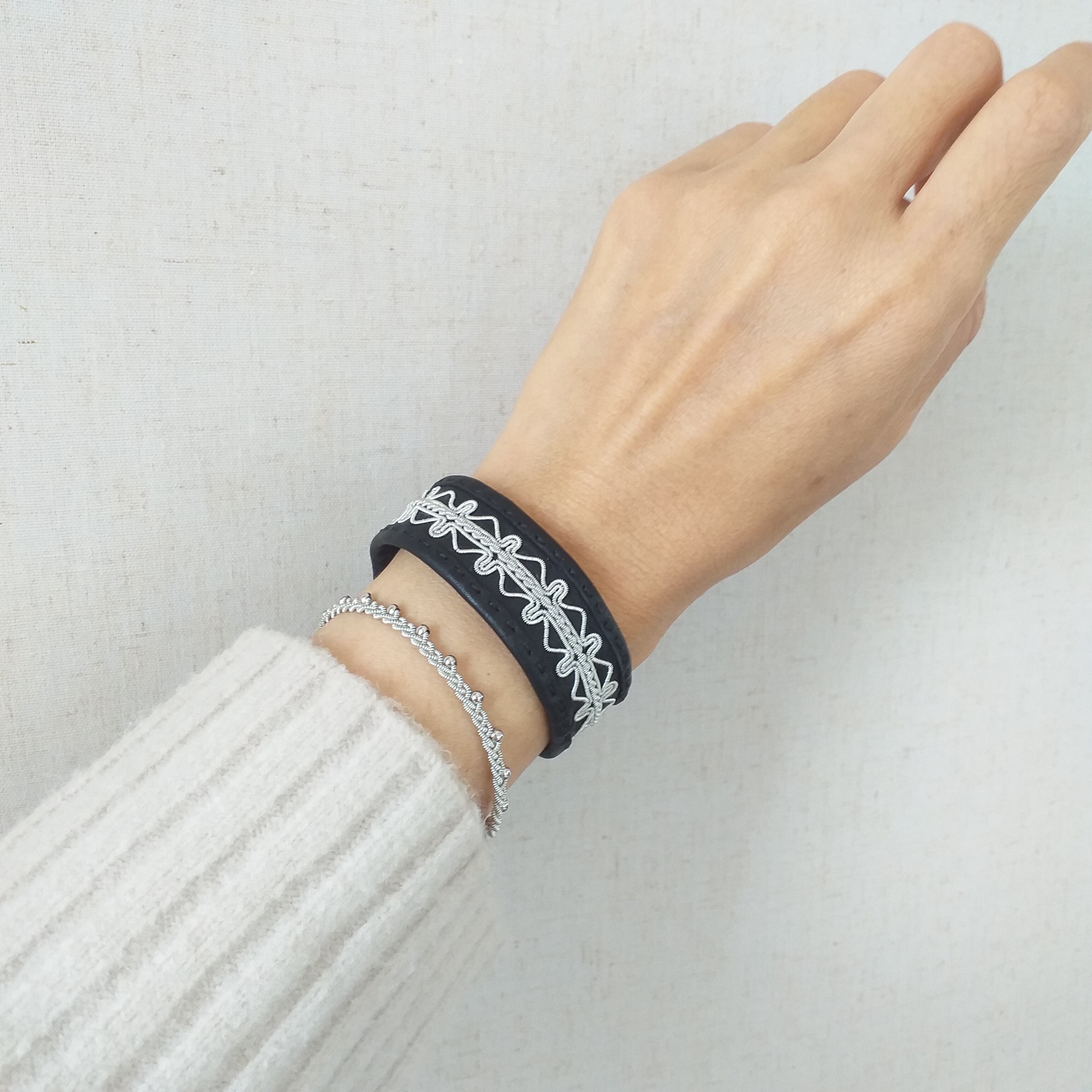 A様専用:ピューター刺繍ブレスレット(Black)&シルバービーズブレスのペア