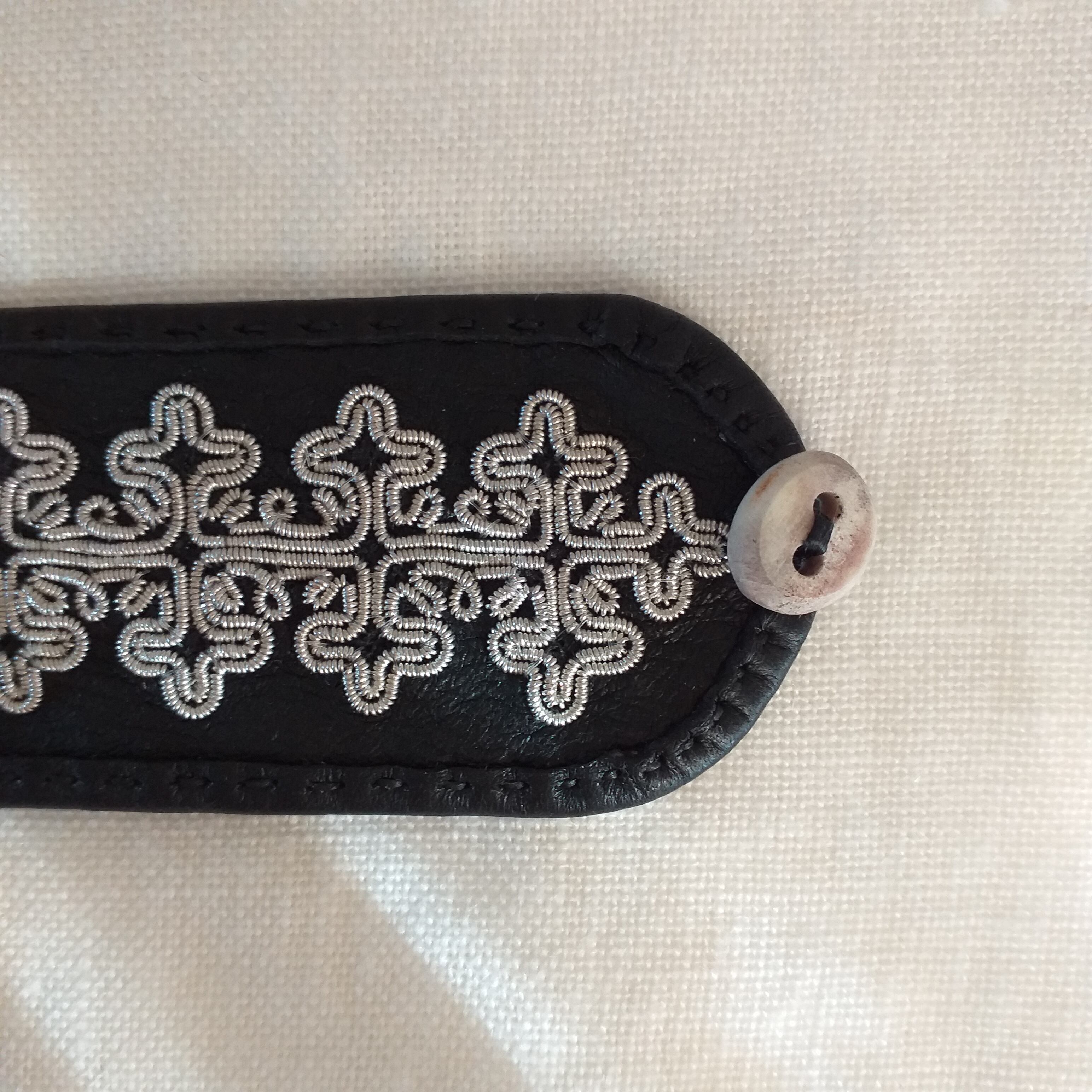 そのトナカイの革や角が使われるピュータ刺繍ブレスレットは、
