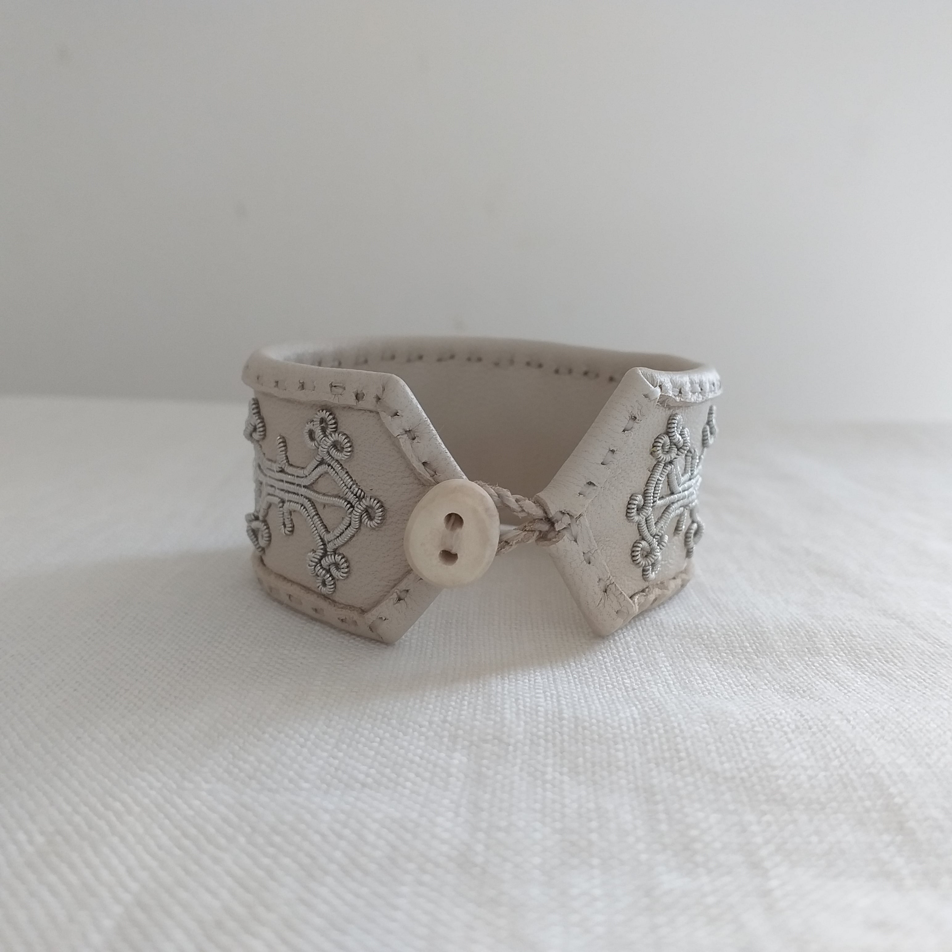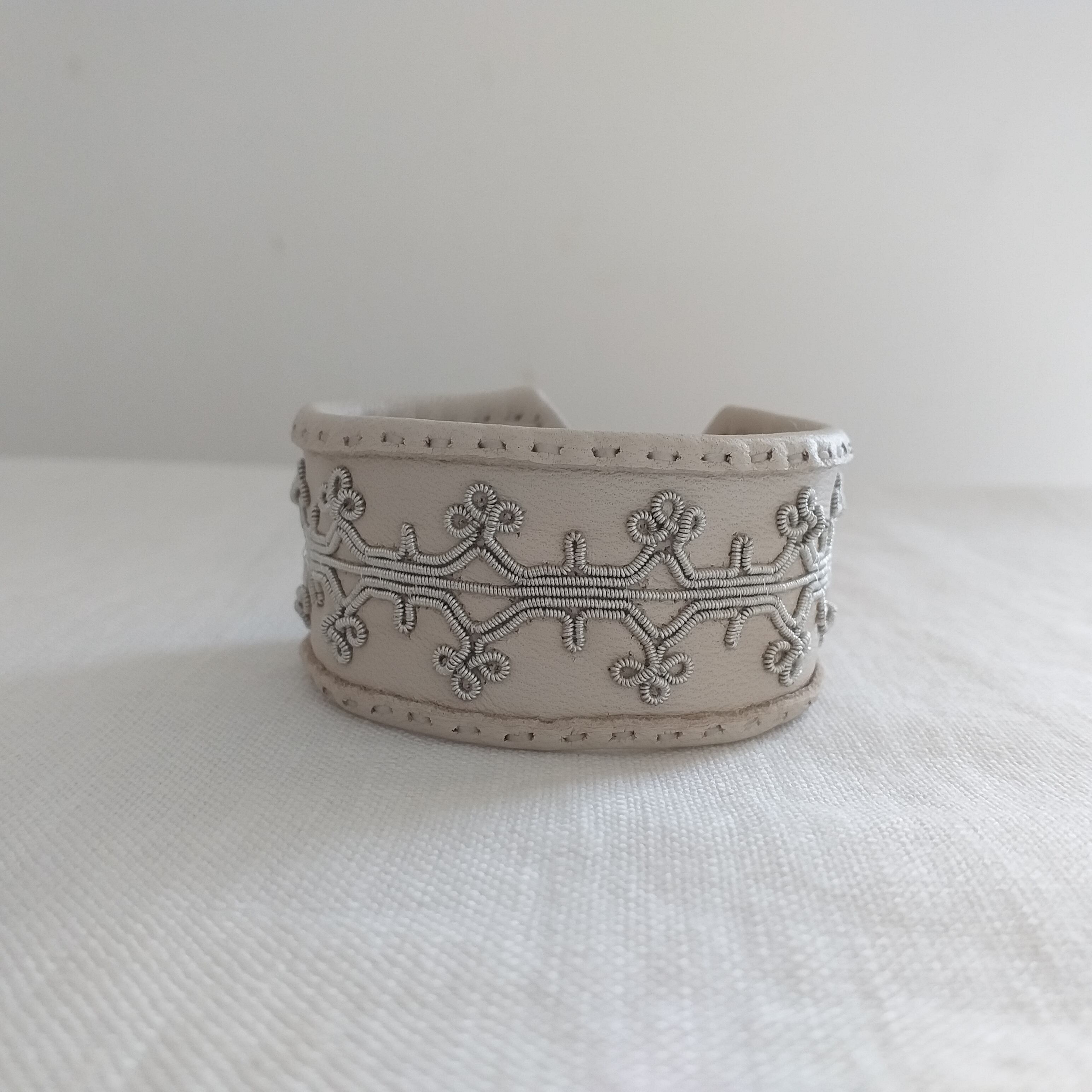 R様 ご予約品 ピューター刺繍ブレスレット(Pearl-gray)