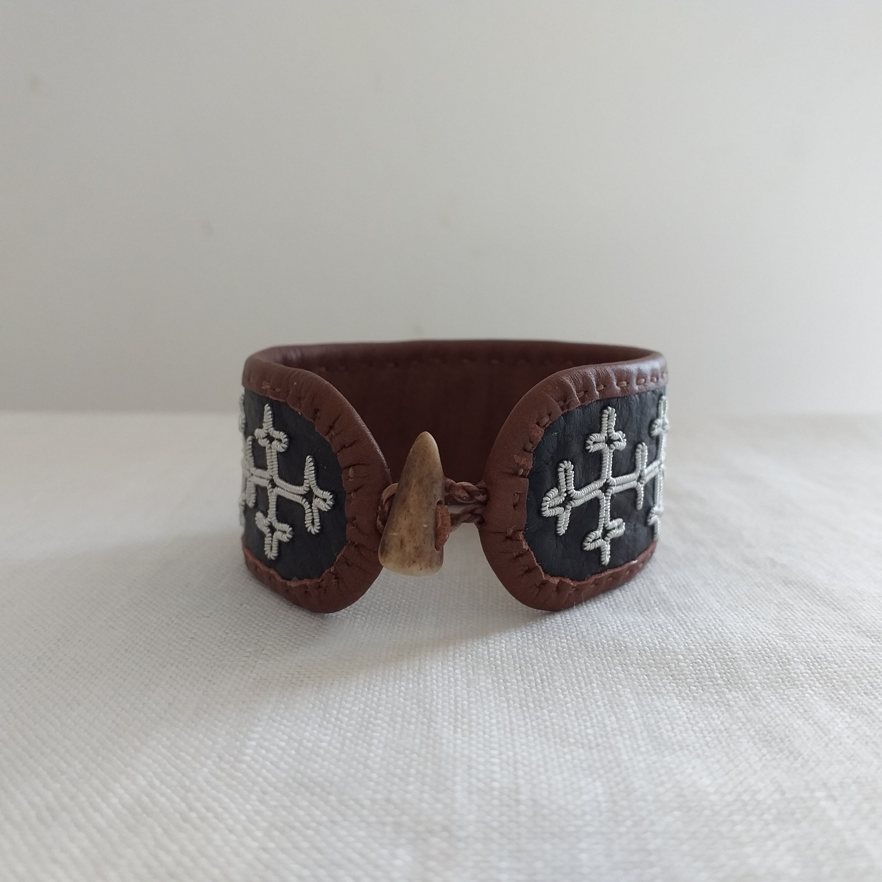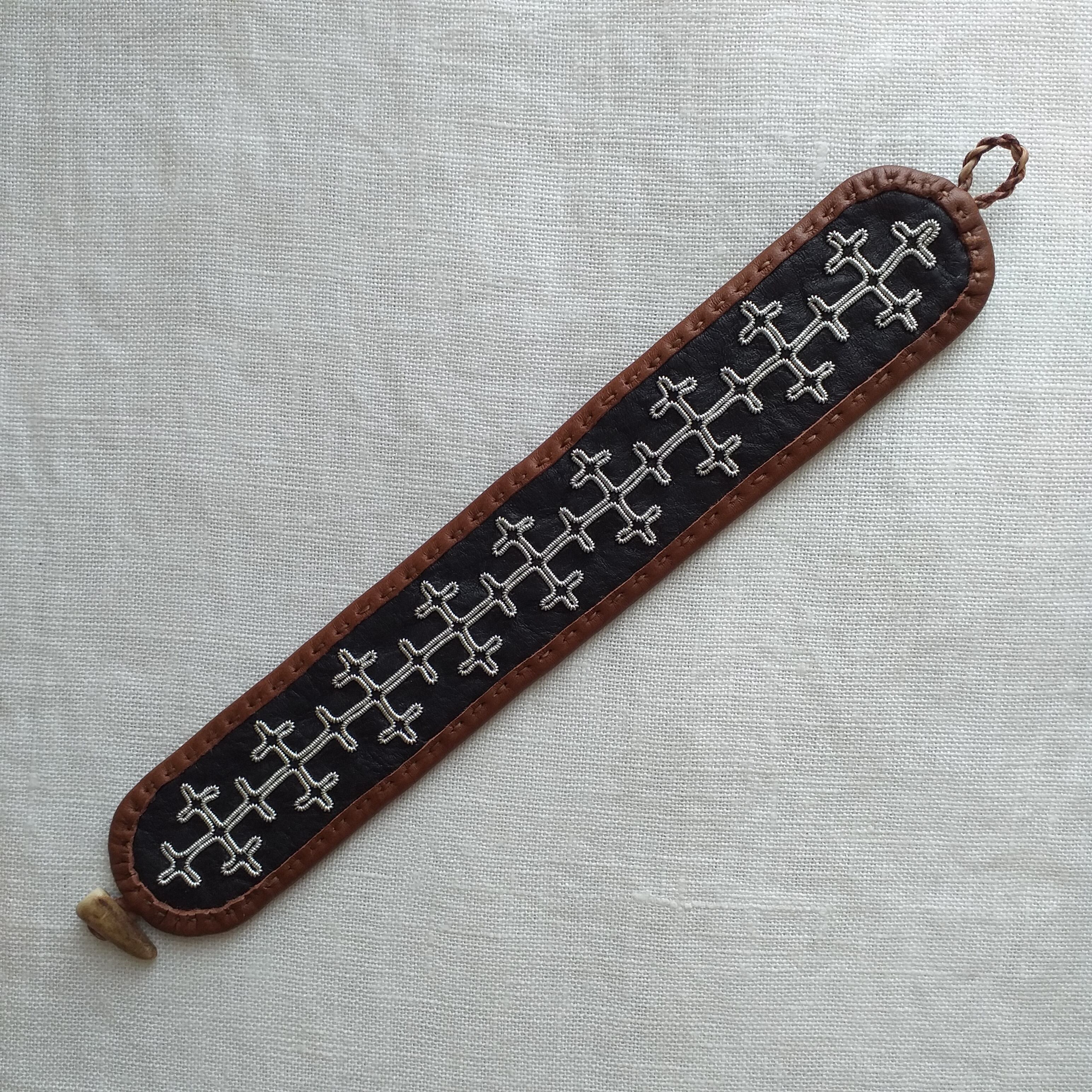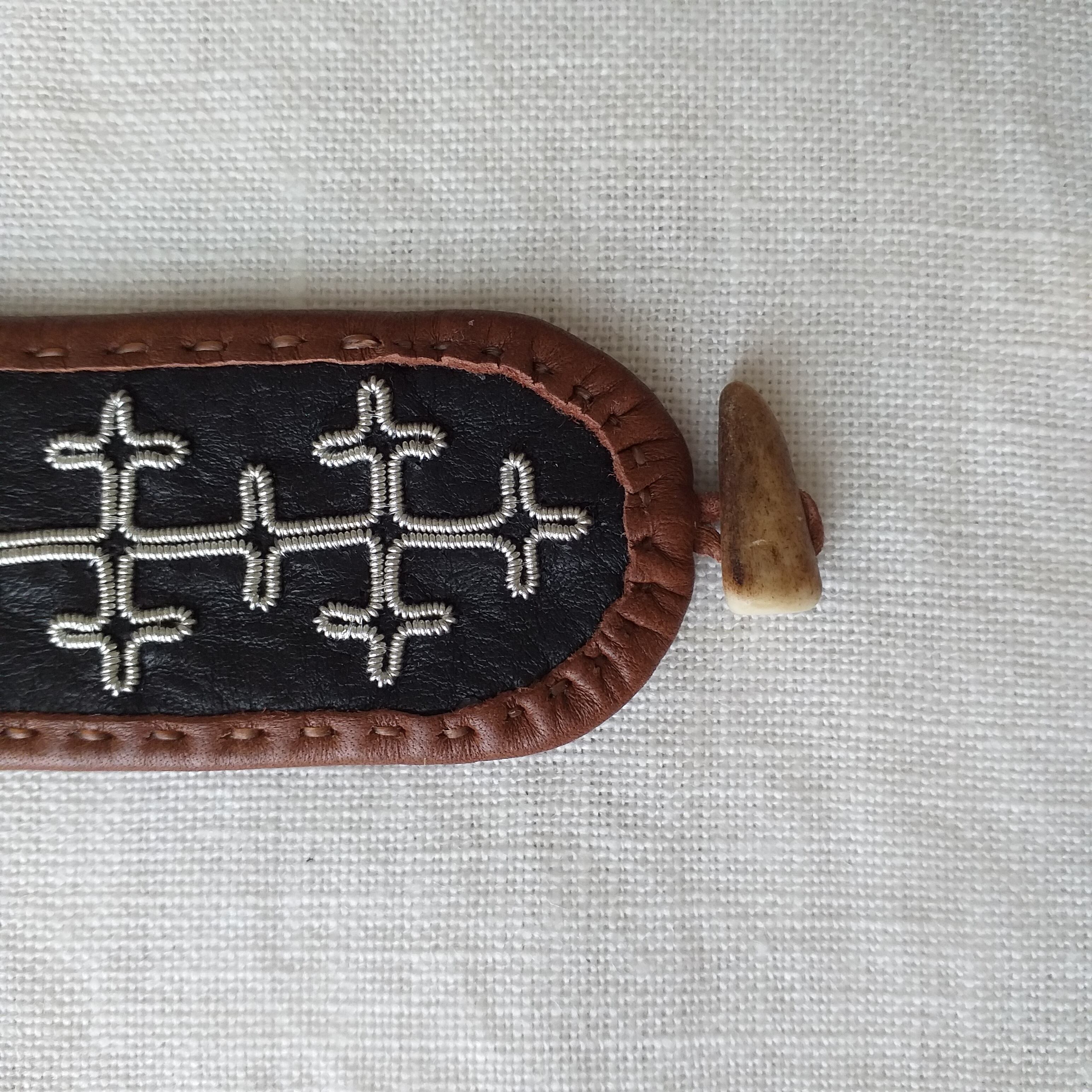 ブラックの革を合わせたツインタイプのサーミ刺繍ブレスレット