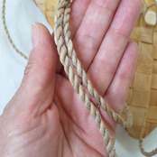 ボタンにシナノキの繊維を撚って作った細い紐を