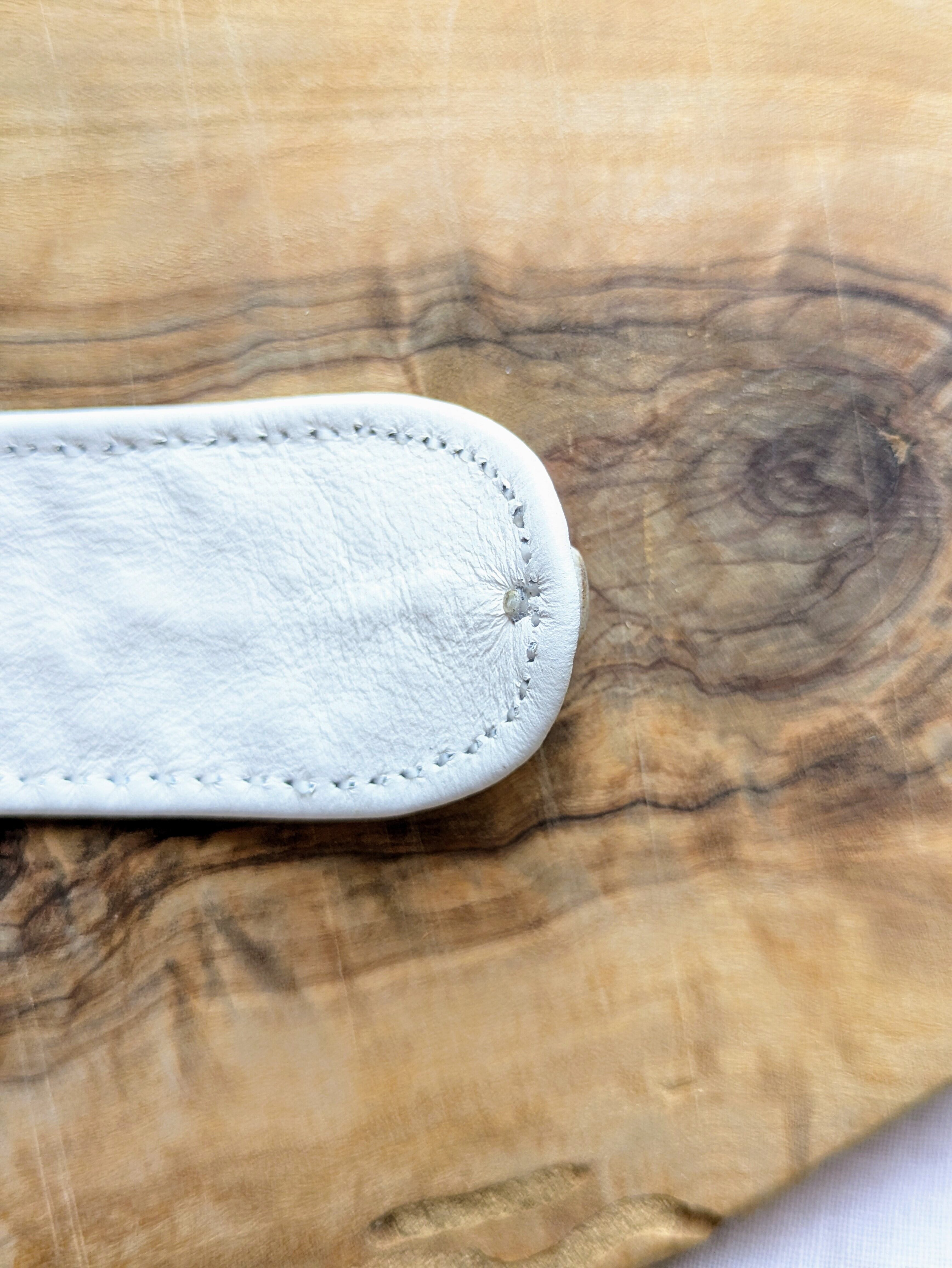 肌触りのよい柔らかなホワイト地のトナカイの革に