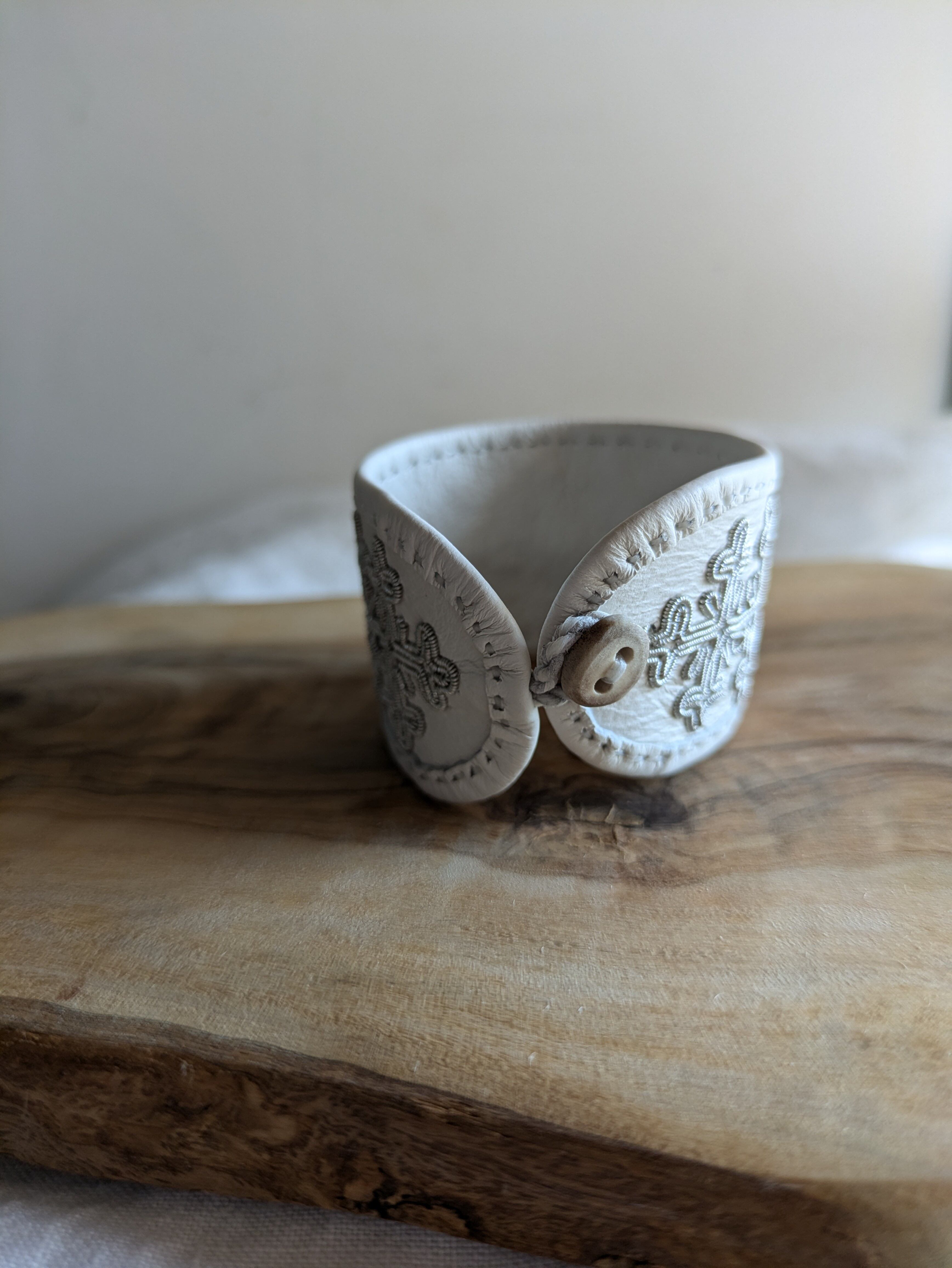 K様 ご予約品 ピューター刺繍ブレスレット WIDE(White)