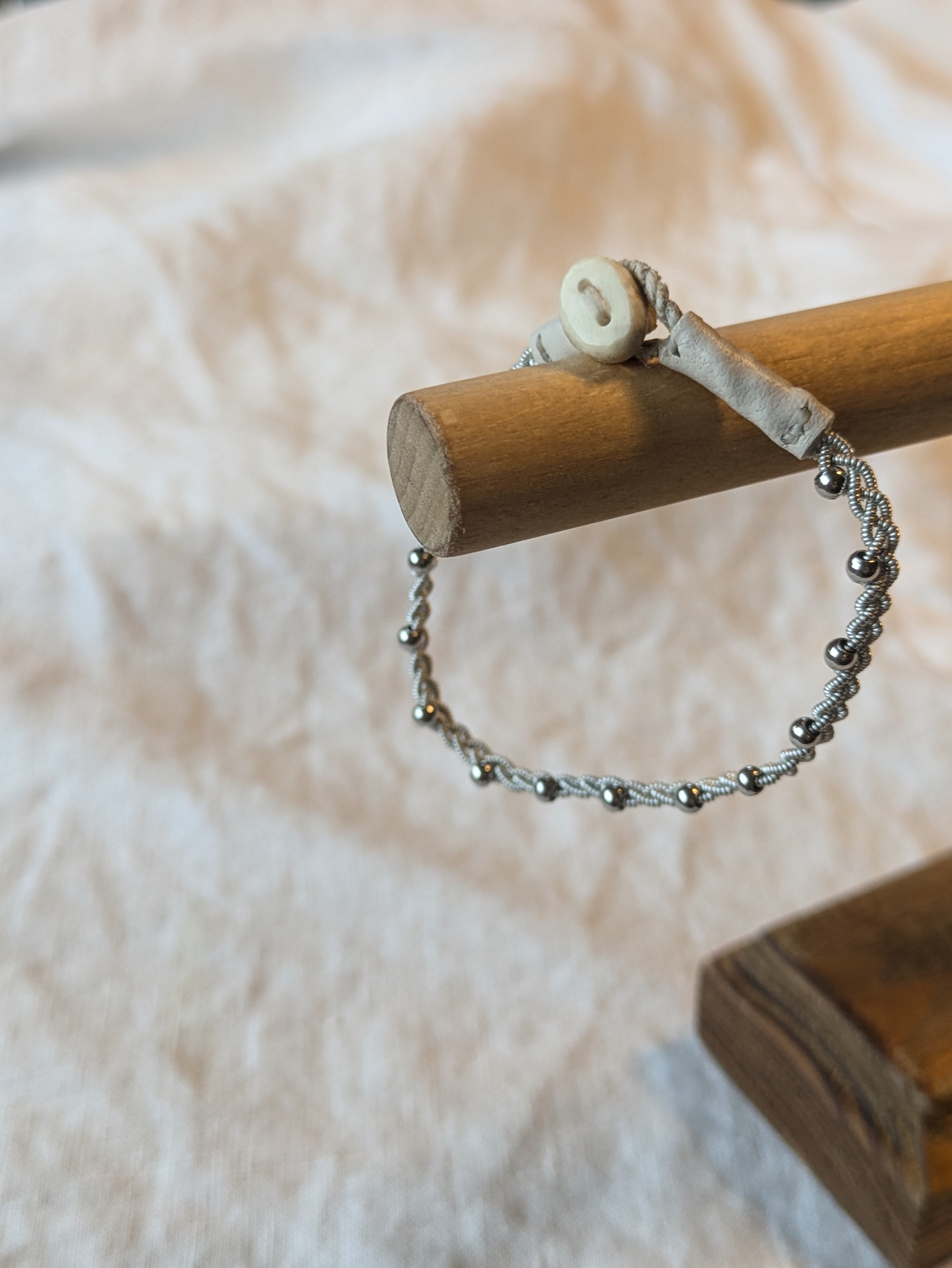 シルバービーズをあしらったブレスレットになります。